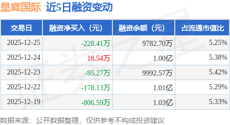 证券之星消息,12月25日,皇庭国际(000056)融资买入100.27万元,融资偿还328.68万元,融资净卖出228.41万元,融资余额9782.7万元。