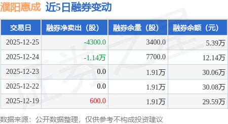 证券之星消息,12月25日,濮阳惠成(300481)融资买入1252.49万元,融资偿还1496.95万元,融资净卖出244.47万元,融资余额2.42亿元。