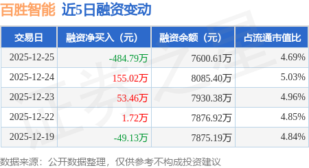 证券之星消息,12月25日,百胜智能(301083)融资买入367.6万元,融资偿还852.39万元,融资净卖出484.79万元,融资余额7600.61万元。