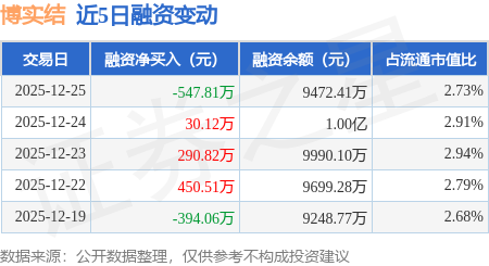 证券之星消息,12月25日,博实结(301608)融资买入574.29万元,融资偿还1122.09万元,融资净卖出547.81万元,融资余额9472.41万元。