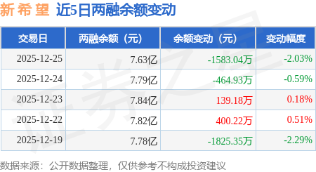证券之星消息,12月25日,新 希 望(000876)融资买入1043.3万元,融资偿还2615.06万元,融资净卖出1571.76万元,融资余额7.58亿元。
