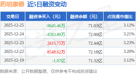 证券之星消息,12月25日,药明康德(603259)融资买入2.08亿元,融资偿还3.05亿元,融资净卖出9645.46万元,融资余额71.03亿元。