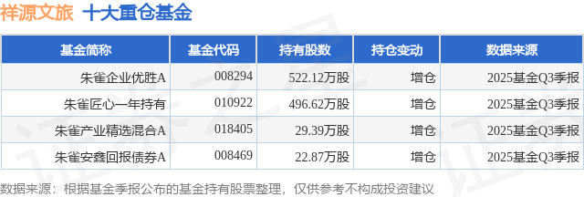 根据2025基金Q3季报公募基金重仓股数据,重仓该股的公募基金共4家,其中持有数量最多的公募基金为朱雀基金的朱雀企业优胜A。朱雀企业优胜A目前规模为6.67亿元,最新净值1.4786(12月25日),较上一交易日上涨0.16%,近一年上涨21.73%。该公募基金现任基金经理为陈飞。陈飞在任的基金产品包括:朱雀匠心一年持有,管理时间为2025年1月13日至今,期间收益率为18.13%;朱雀产业精选混合A,管理时间为2025年5月26日至今,期间收益率为9.43%;朱雀企业优选A,管理时间为2025年9月11日至今,期间收益率为-4.74%。