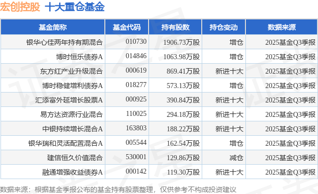 重仓宏创控股的前十大公募基金请见下表: