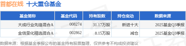 根据2025基金Q3季报公募基金重仓股数据,重仓该股的公募基金共2家,其中持有数量最多的公募基金为大成基金的大成行业先锋混合A。大成行业先锋混合A目前规模为1.44亿元,最新净值1.356(12月25日),较上一交易日下跌0.43%,近一年上涨2.86%。该公募基金现任基金经理为于威业。于威业在任的基金产品包括:大成专精特新混合A,管理时间为2024年11月15日至今,期间收益率为7.49%;