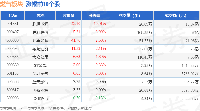 证券之星消息,12月26日燃气板块较上一交易日上涨0.15%,胜通能源领涨。当日上证指数报收于3963.68,上涨0.1%。深证成指报收于13603.89,上涨0.54%。燃气板块个股涨跌见下表: