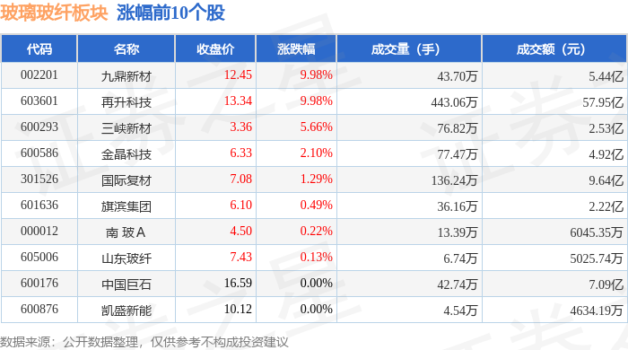 证券之星消息,12月26日玻璃玻纤板块较上一交易日上涨0.24%,九鼎新材领涨。当日上证指数报收于3963.68,上涨0.1%。深证成指报收于13603.89,上涨0.54%。玻璃玻纤板块个股涨跌见下表:
