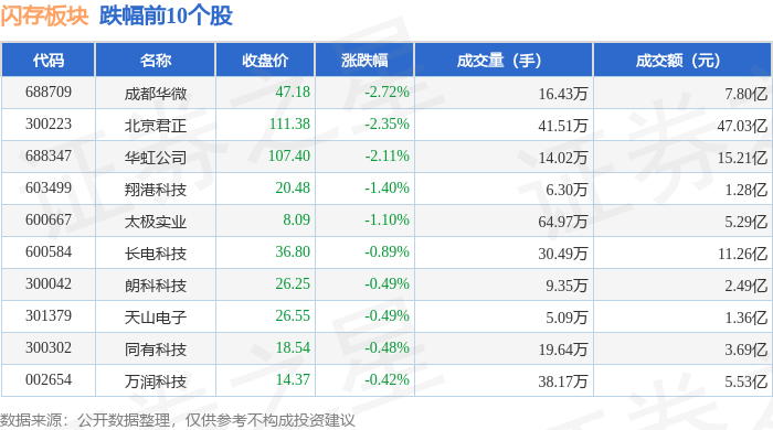 从资金流向上来看,当日闪存板块主力资金净流入2787.22万元,游资资金净流出11.77亿元,散户资金净流入11.49亿元。闪存板块个股资金流向见下表: