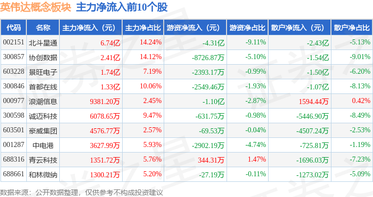 从资金流向上来看,当日英伟达概念板块主力资金净流出78.05亿元,游资资金净流入32.08亿元,散户资金净流入45.97亿元。英伟达概念板块个股资金流向见下表: