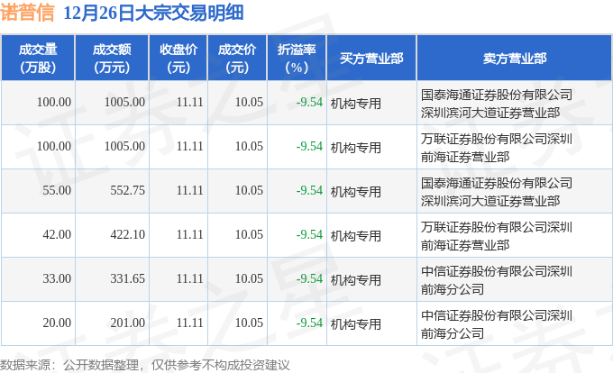 证券之星消息,12月26日诺 普 信发生大宗交易,交易数据如下: