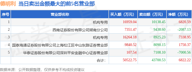 从龙虎榜公布的当日买卖数据来看,机构合计净买入2.05亿元。章盟主、上海中山东路等知名游资榜上有名。(知名游资章盟主一般指国泰海通证券股份有限公司上海长宁区江苏路证券营业部席位、知名游资上海中山东路一般指国泰海通证券股份有限公司上海松江区中山东路证券营业部席位,根据市场资料整理,仅供参考)