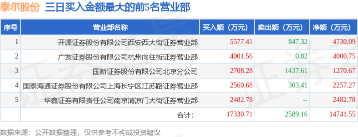 证券之星消息,沪深交易所2025年12月26日公布的交易公开信息显示,泰尔股份(002347)因连续三个交易日内,涨幅偏离值累计达到20%的证券登上龙虎榜。此次是近5个交易日内第1次上榜。