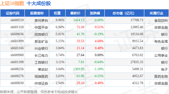 证券之星消息,12月26日,上证50(000016)指数报收于3045.4点,涨0.41%,成交1009.17亿元,换手率0.2%。当日该指数成份股中,上涨的有19家,中国中免以8.32%的涨幅领涨,下跌的有28家,海光信息以1.29%的跌幅领跌。