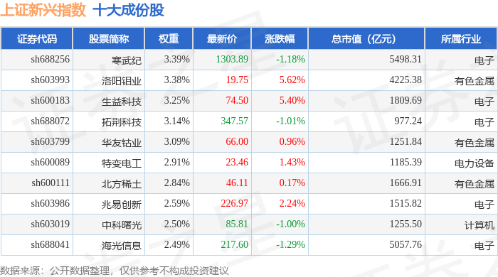 证券之星消息,12月26日,上证新兴(000067)指数报收于8880.44点,涨0.58%,成交1114.71亿元,换手率1.31%。当日该指数成份股中,上涨的有22家,中国卫通以9.98%的涨幅领涨,下跌的有26家,景旺电子以4.27%的跌幅领跌。