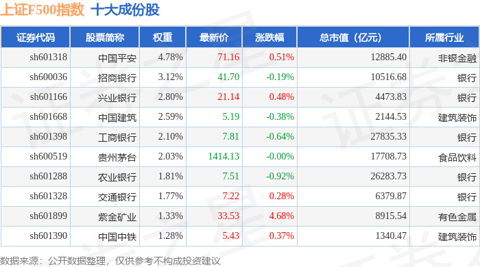 上证F500(000100)指数十大成份股详情如下: