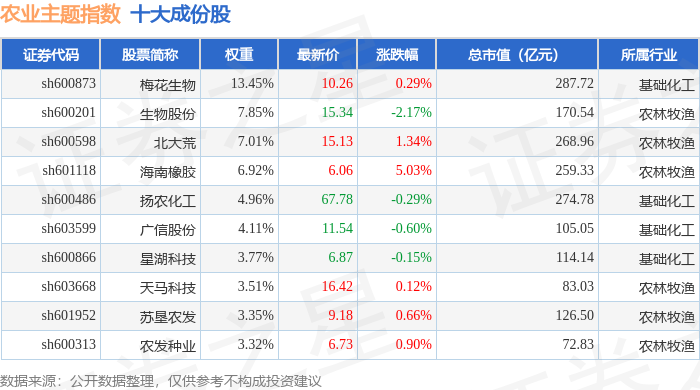 资金流向方面,农业主题(000122)指数成份股当日主力资金净流出合计1.04亿元,游资资金净流入合计823.98万元,散户资金净流入合计9545.14万元。成份股资金流向详情见下表: