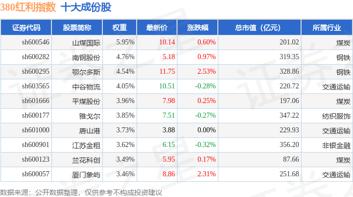 资金流向方面,380红利(000150)指数成份股当日主力资金净流出合计1.59亿元,游资资金净流出合计6344.35万元,散户资金净流入合计2.22亿元。成份股资金流向详情见下表: