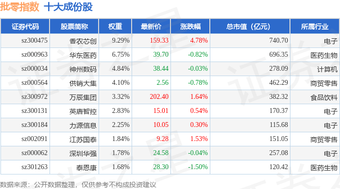 证券之星消息,12月26日,批零指数(399236)报收于1591.69点,涨0.17%,成交366.32亿元,换手率4.25%。当日该指数成份股中,上涨的有31家,漱玉平民以8.03%的涨幅领涨,下跌的有66家,星徽股份以4.32%的跌幅领跌。