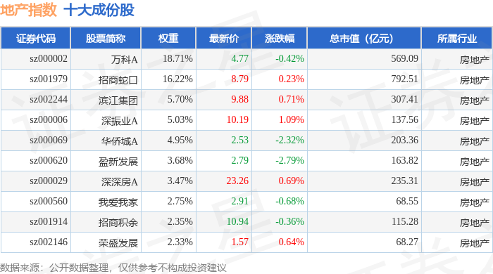 地产指数(399241)十大成份股详情如下: