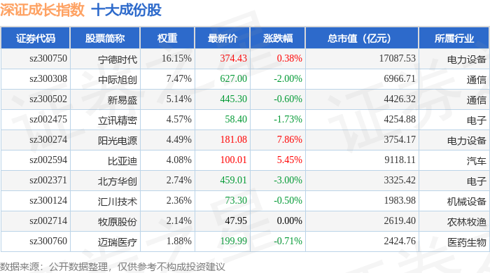 证券之星消息,12月26日,深证成长(399346)指数报收于4541.58点,涨0.5%,成交1995.17亿元,换手率1.75%。当日该指数成份股中,上涨的有46家,永兴材料以10.01%的涨幅领涨,下跌的有51家,麦格米特以4.87%的跌幅领跌。