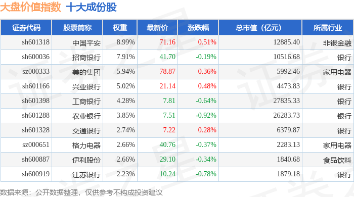 大盘价值(399373)指数十大成份股详情如下: