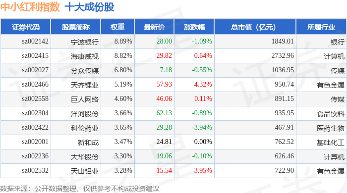 证券之星消息,12月26日,中小红利(399649)指数报收于3268.25点,涨0.37%,成交260.75亿元,换手率0.83%。当日该指数成份股中,上涨的有23家,永兴材料以10.01%的涨幅领涨,下跌的有23家,科伦药业以3.94%的跌幅领跌。