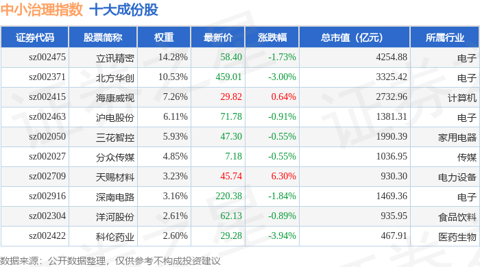 中小治理(399650)指数十大成份股详情如下: