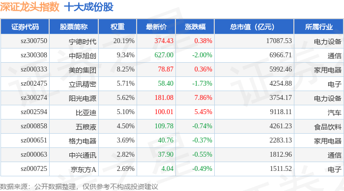深证龙头(399653)指数十大成份股详情如下: