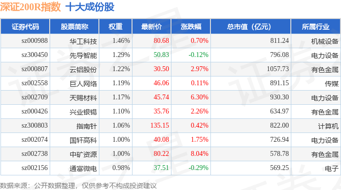 证券之星消息,12月26日,深证200R(399679)指数报收于6399.13点,涨0.95%,成交1882.19亿元,换手率2.01%。当日该指数成份股中,上涨的有115家,永兴材料以10.01%的涨幅领涨,下跌的有76家,麦格米特以4.87%的跌幅领跌。