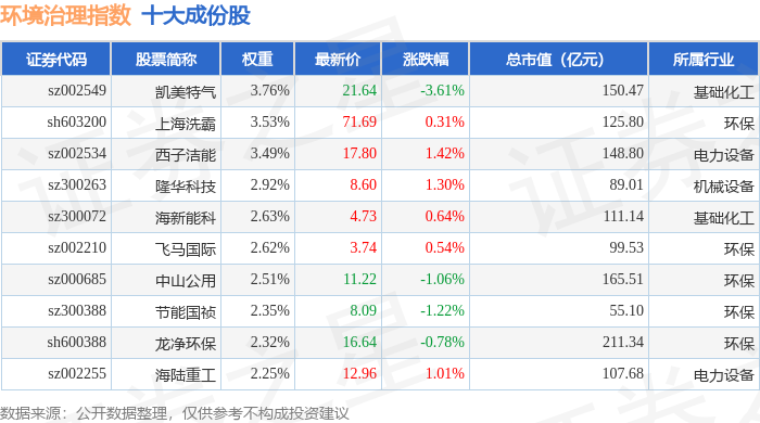 环境治理(399806)指数十大成份股详情如下: