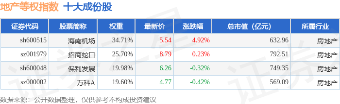 证券之星消息,12月26日,地产等权(399983)指数报收于2093.57点,涨1.2%,成交42.95亿元,换手率1.95%。当日该指数成份股中,上涨的有2家,海南机场以4.92%的涨幅领涨,下跌的有2家,万科A以0.42%的跌幅领跌。