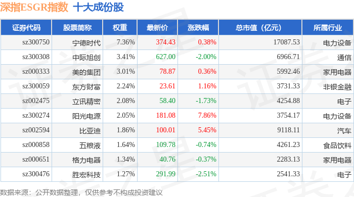 深指ESGR(470026)指数十大成份股详情如下: