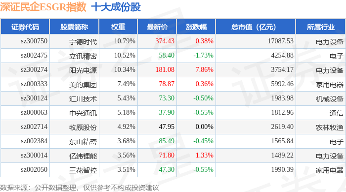 深证民企ESGR(470056)指数十大成份股详情如下: