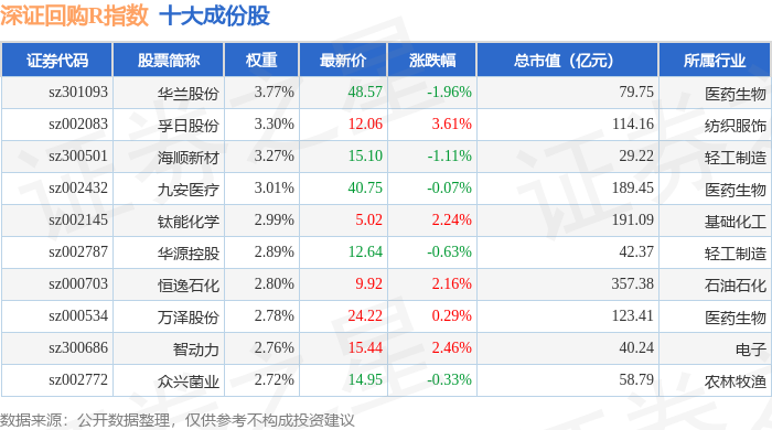 证券之星消息,12月26日,深证回购R(470063)指数报收于3312.29点,涨0.55%,成交441.33亿元,换手率1.81%。当日该指数成份股中,上涨的有23家,华联控股以10.0%的涨幅领涨,下跌的有25家,七匹狼以3.14%的跌幅领跌。