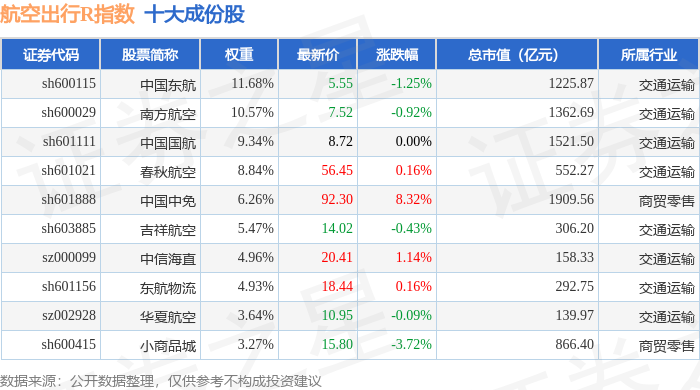 资金流向方面,航空出行R(480059)指数成份股当日主力资金净流出合计5.74亿元,游资资金净流出合计1011.11万元,散户资金净流入合计5.84亿元。成份股资金流向详情见下表: