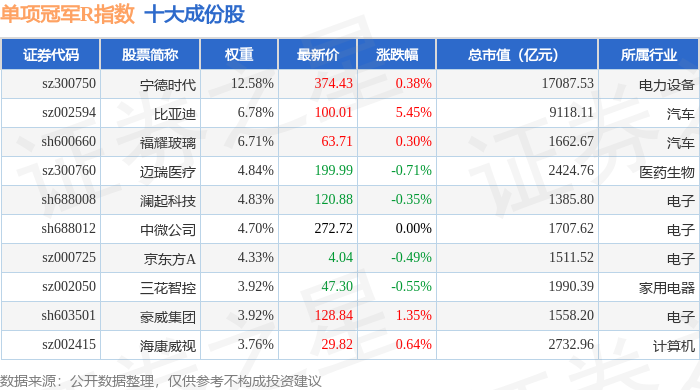 单项冠军R(480150)指数十大成份股详情如下: