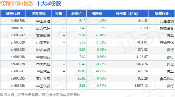 红利价值R(489016)指数十大成份股详情如下: