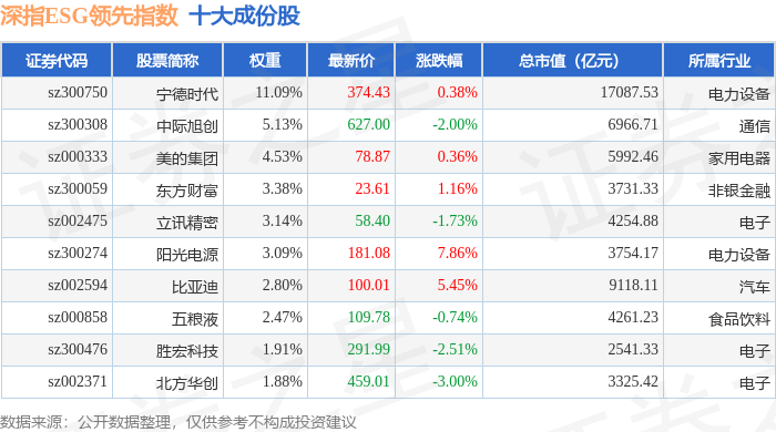 资金流向方面,深指ESG领先(970029)指数成份股当日主力资金净流出合计32.35亿元,游资资金净流出合计7.94亿元,散户资金净流入合计40.3亿元。成份股资金流向详情见下表: