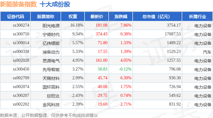 证券之星消息,12月26日,新能装备(970043)指数报收于6326.53点,涨2.1%,成交1095.99亿元,换手率4.32%。当日该指数成份股中,上涨的有33家,协鑫集成以10.15%的涨幅领涨,下跌的有17家,麦格米特以4.87%的跌幅领跌。