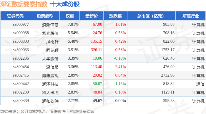 证券之星消息,12月26日,深证数据要素(970053)指数报收于3887.89点,涨0.72%,成交470.29亿元,换手率2.52%。当日该指数成份股中,上涨的有32家,电科网安以10.01%的涨幅领涨,下跌的有17家,深桑达A以1.92%的跌幅领跌。
