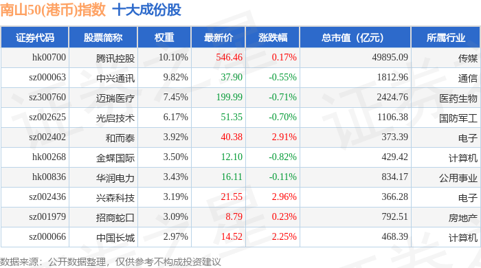 南山50(港币)(980024)指数十大成份股详情如下:
