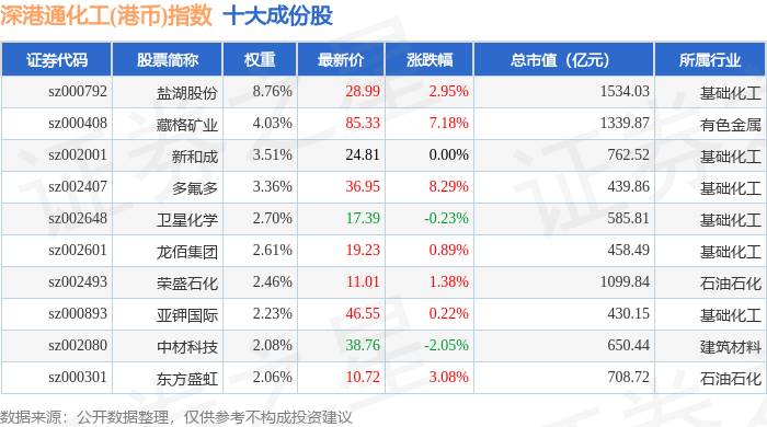 深港通化工(港币)(983064)指数十大成份股详情如下: