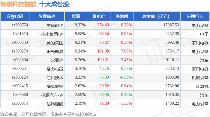 低碳科技(983160)指数十大成份股详情如下: