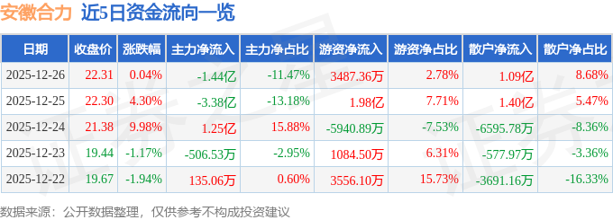 12月26日的资金流向数据方面,主力资金净流出1.44亿元,占总成交额11.47%,游资资金净流入3487.36万元,占总成交额2.78%,散户资金净流入1.09亿元,占总成交额8.68%。