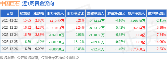 沪深股通持股方面,截止2025年12月26日收盘,中国巨石沪股通持股数为4.73亿股,占流通股比为1181.0%。