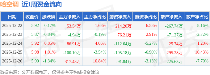 资金流向数据方面,本周哈空调主力资金合计净流入352.88万元,游资资金合计净流出109.26万元,散户资金合计净流出243.62万元。本周资金流向一览见下表: