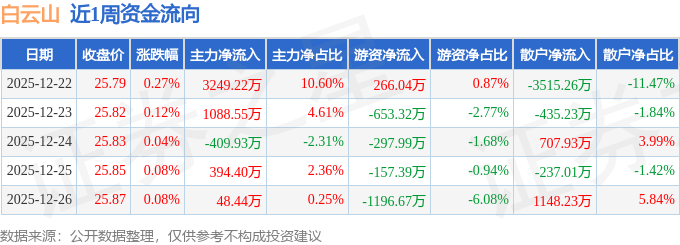 沪深股通持股方面,截止2025年12月26日收盘,白云山沪股通持股数为3831.15万股,占流通股比为273.0%。