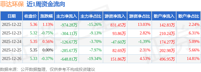 资金流向数据方面,本周菲达环保主力资金合计净流出2339.54万元,游资资金合计净流入1112.26万元,散户资金合计净流入1227.28万元。本周资金流向一览见下表: