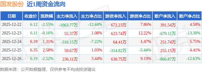 资金流向数据方面,本周国发股份主力资金合计净流出1028.76万元,游资资金合计净流入1676.31万元,散户资金合计净流出647.54万元。本周资金流向一览见下表: