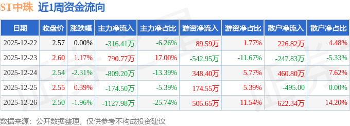 资金流向数据方面,本周ST中珠主力资金合计净流出1637.33万元,游资资金合计净流入575.25万元,散户资金合计净流入1062.08万元。本周资金流向一览见下表: